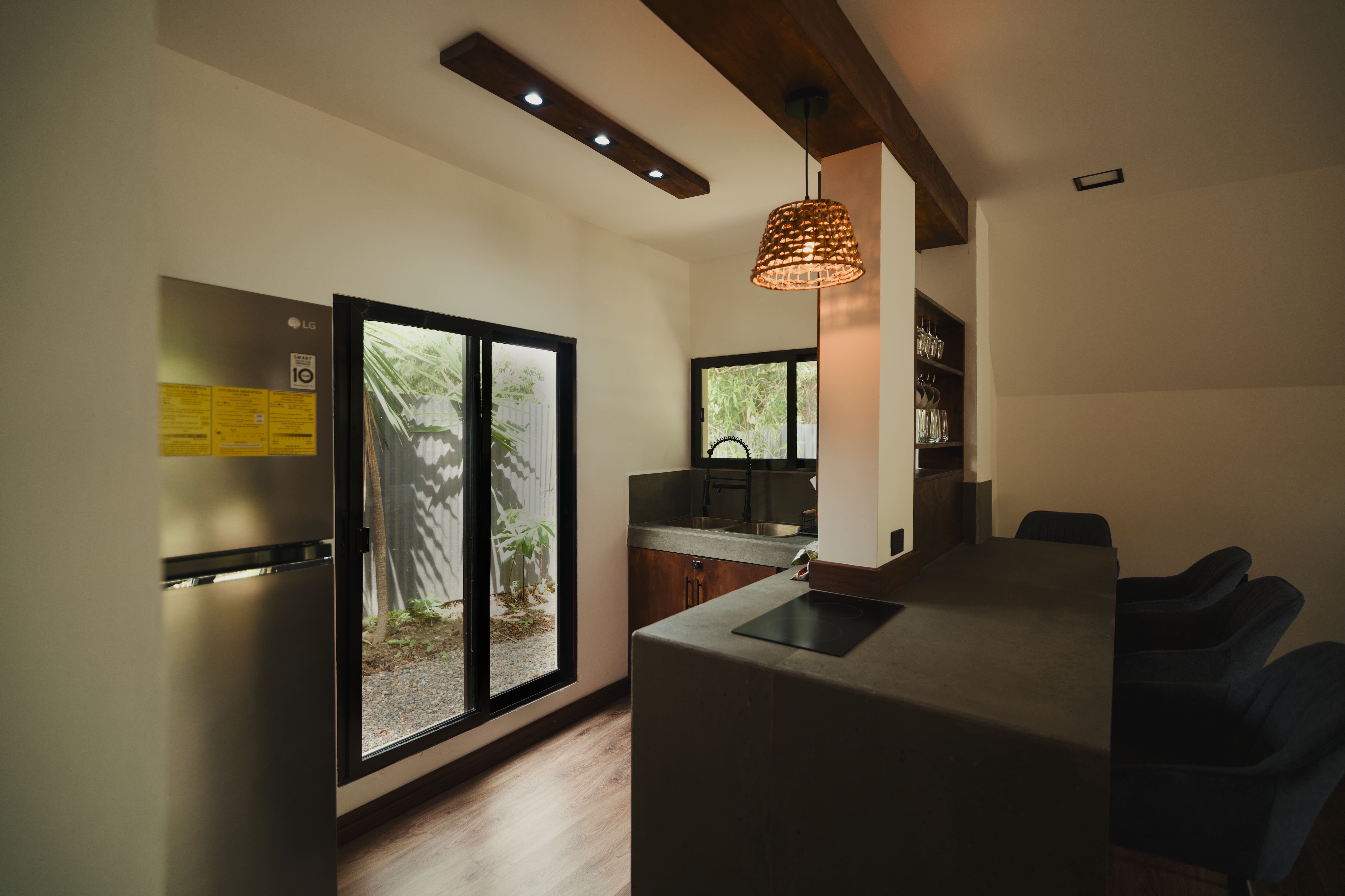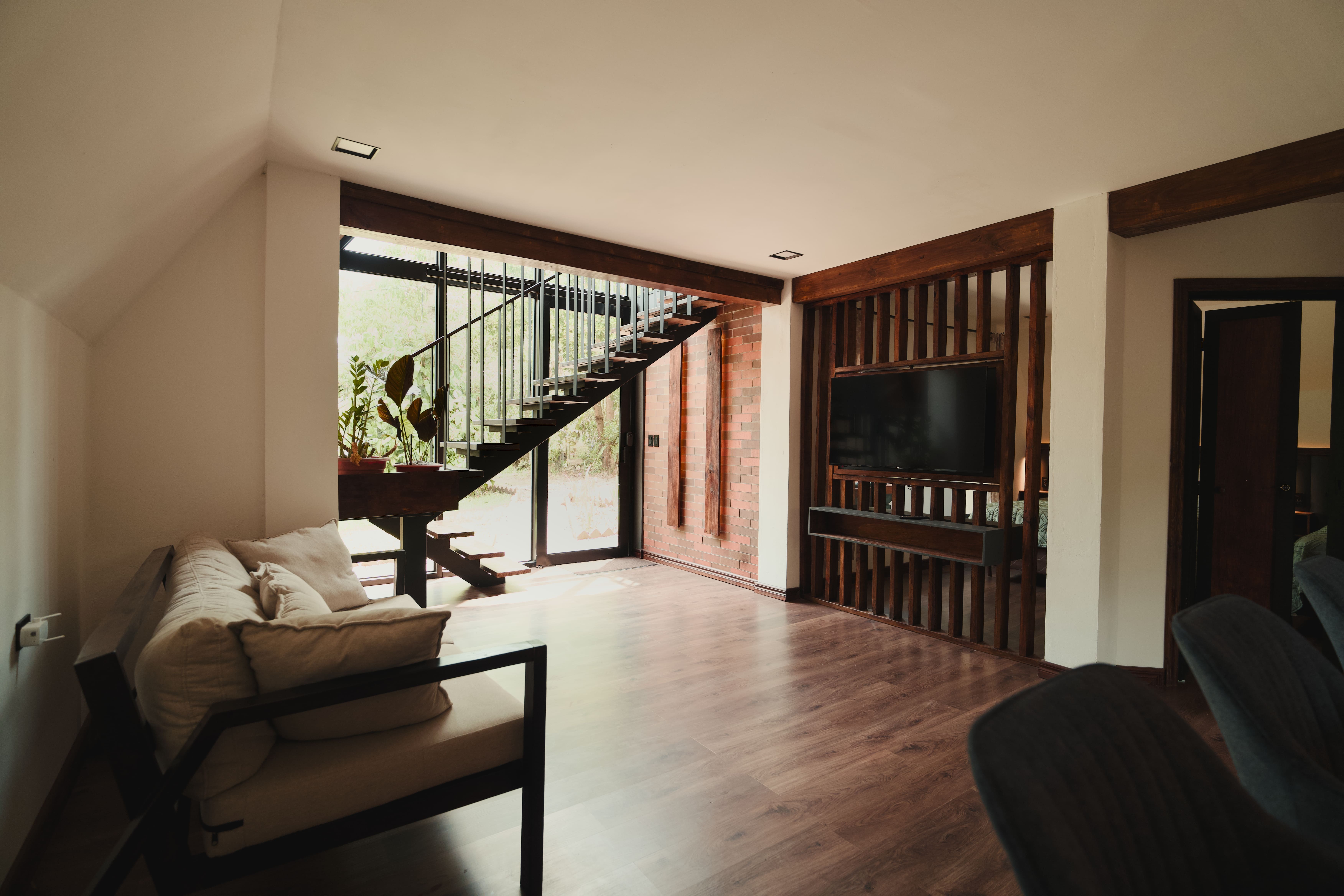 La cabaña cuenta con amplios ventanales que dejan entrar la luz natural y ofrecen vistas únicas del entorno, además de espacios cálidos que invitan a compartir momentos en familia o en pareja. Ya sea descansando en la terraza, disfrutando de una fogata bajo las estrellas o explorando los alrededores, cada instante se convierte en una experiencia inolvidable.