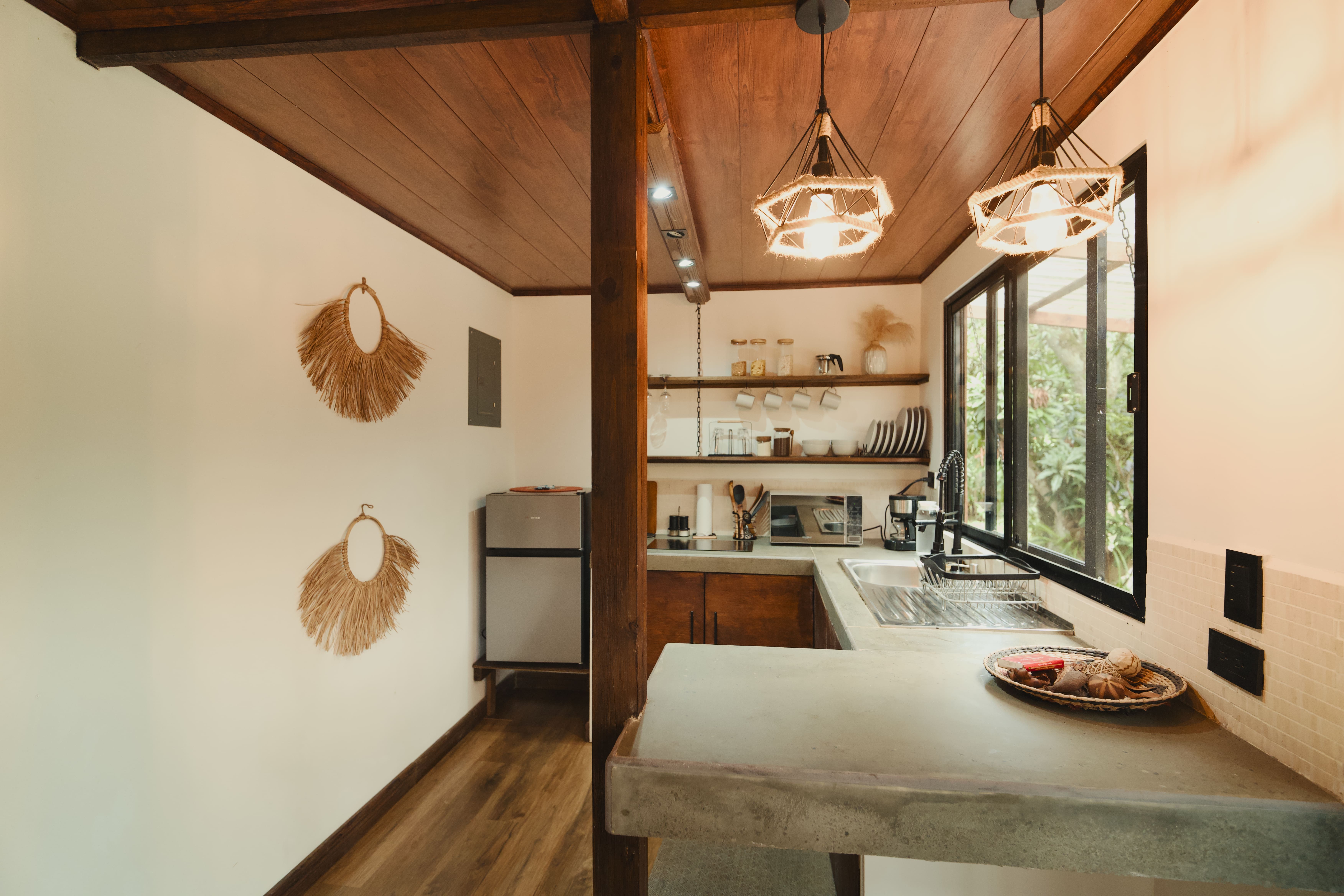 La cabaña cuenta con amplios ventanales que dejan entrar la luz natural y ofrecen vistas únicas del entorno, además de espacios cálidos que invitan a compartir momentos en familia o en pareja. Ya sea descansando en la terraza, disfrutando de una fogata bajo las estrellas o explorando los alrededores, cada instante se convierte en una experiencia inolvidable.